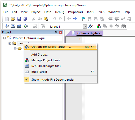 11. Change the settings so that a HEX file is generated when you give Build to the project. You must enter the project settings and check " Create HEX File" with "HEX-80" format .