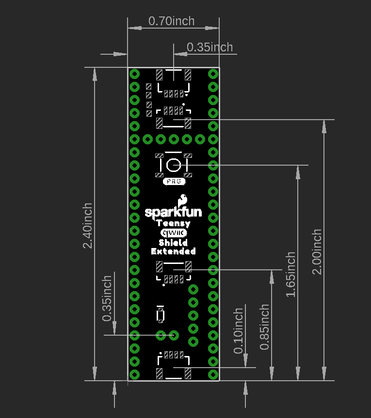 The Qwiic Shield for Teensy comes with two 24-pin and one 5-pin headers and will need to solder the headers to the shield and, if necessary, to your Teensy board. Take care to match the markings on the Qwiic Shield to the appropriate pins on your Teensy to avoid possibly damaging your boards.