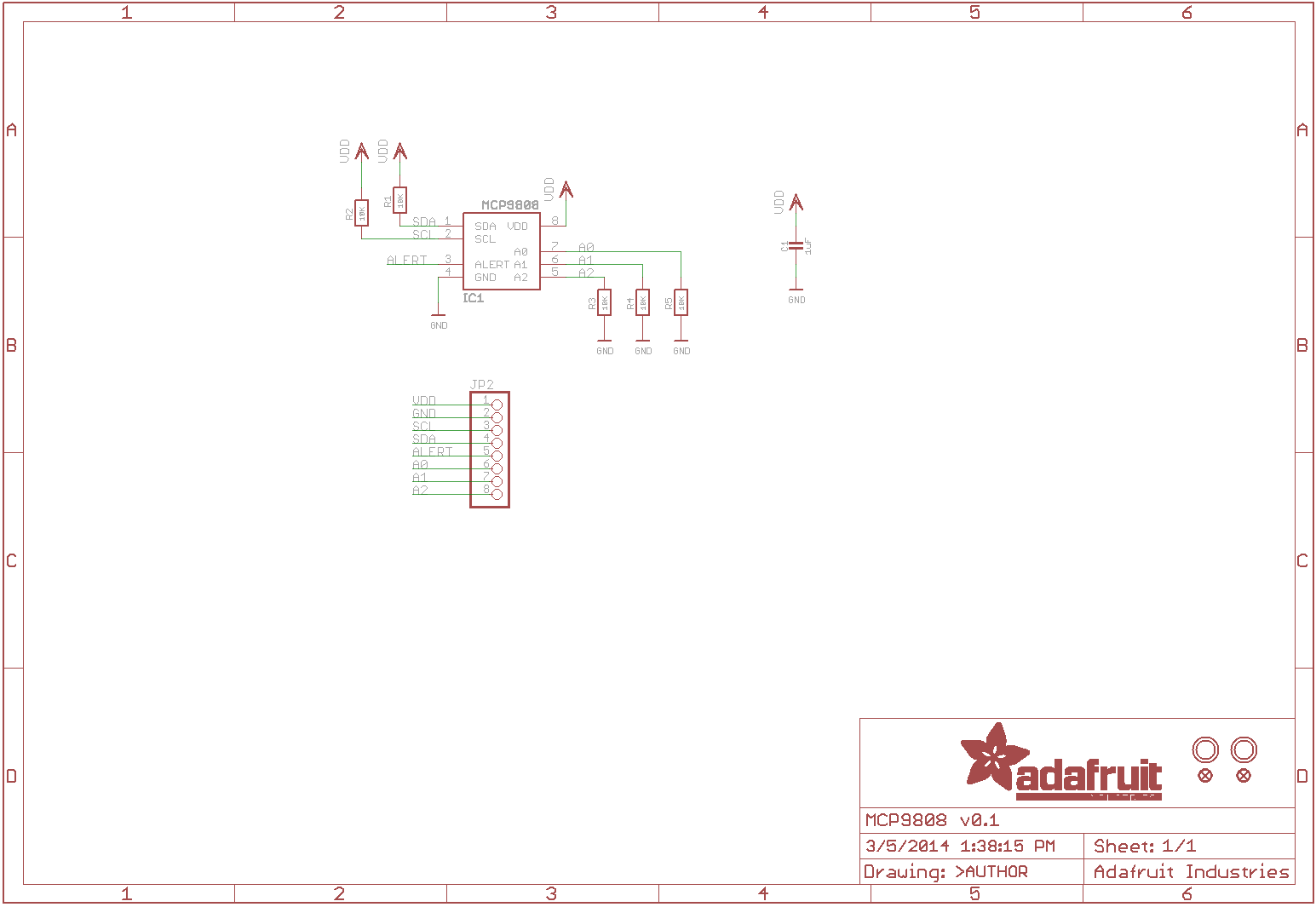 Unlike the DS18B20, this sensor does not come in through-hole package so we placed this small sensor on a breakout board PCB for easy use. The PCB includes mounting holes, and pull down resistors for the 3 address pins.