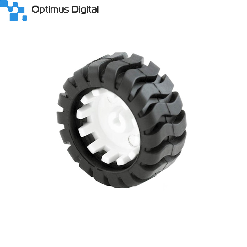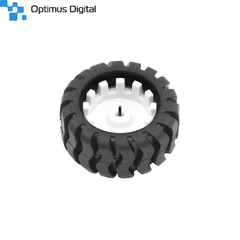 This listing for a pair of white plastic wheels with rubber tires measuring 42 mm (1.65") in diameter and press-fit onto the 3mm D output shafts on our micro metal gearmotors. The gearmotors mount on "concave" side of the wheel (the one with the protruding teeth) as shown on the pictures. The motor's output shaft slides into the socket easily at first but will make a snug fit when pressed through to the other edge of the hub.