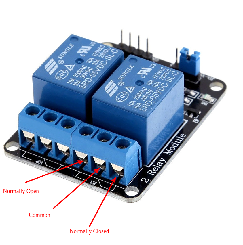Pin-ul "Normally Closed" este în legătură cu pin-ul "Common" atunci când nu se aplică tensiune pe pin-ul de control, iar pin-ul "Normally Open" este deconectat. Atunci când se aplică tensiune pe pin-ul de control, "Normally Closed" este deconectat, fiind în legătură pinii "Common" și "Normally Open".