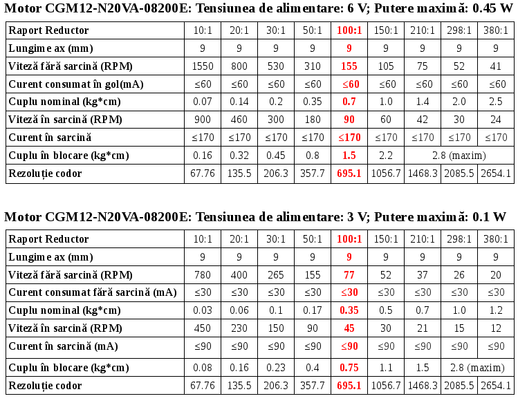 Micro Motor cu Reductor și Codor CGM12-N20VA-8200E (77 RPM la 3 V, 155 RPM la 6 V)
