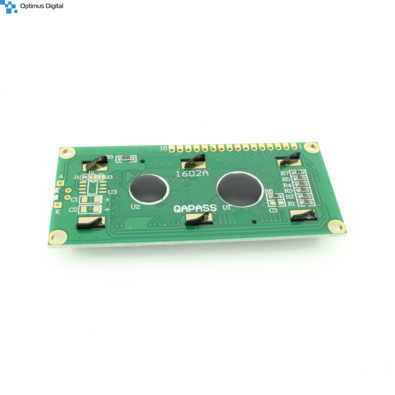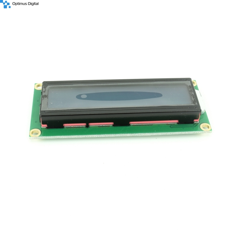 Modul LCD cu backlight albastru ce afișează 2 linii a câte 16 caractere.