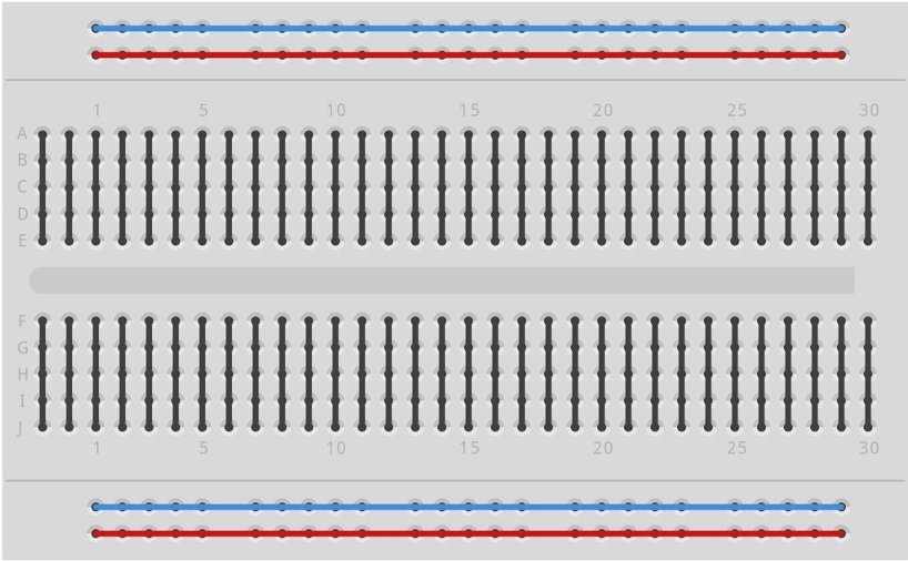 Breadboardurile pot avea diverse dimensiuni. “Anatomia” de bază a acestora se poate observa în imaginea alaturata: