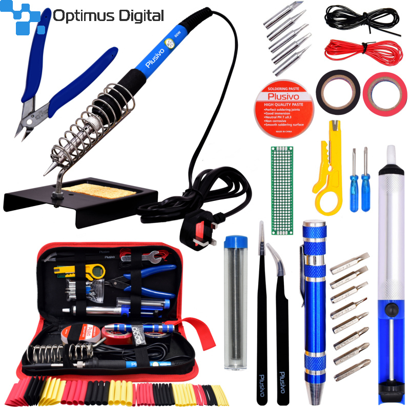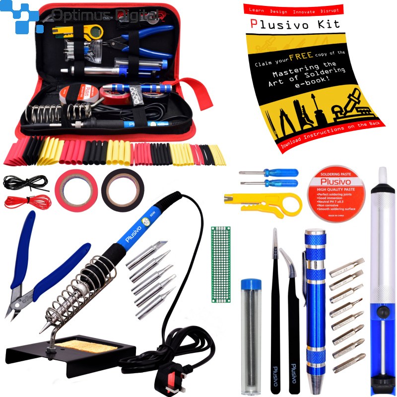 Acest Kit pentru Lipit Plusivo include unelte des utilizate pentru lipire, cât și un sfic. Letcon-ul de 60 W cu temperatură reglabilă este ușor de folosit, iar mânerul izolat, din silicon, vă protejează astfel încât să puteți lipi în siguranță. Set-ul include, pe lângă letcon, și alte unelte pentru lipire și dezlipire, într-o borsetă durabilă ce îți permite să păstrezi toate uneltele organizate. Doar deschizi borseta și îți alegi unealta de care ai nevoie. De asemenea, puteți descărca un ghid în format electronic.